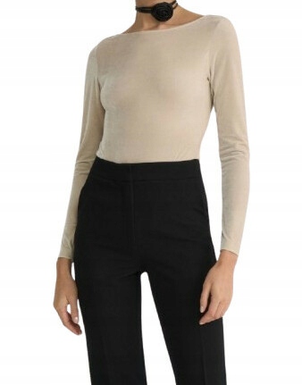 БЕЖЕВЕ ВЕЛЮРОВЕ БОДИ З ДОВГИМ РУКАВОМ, ГЛАДКА, CLASSIC M
