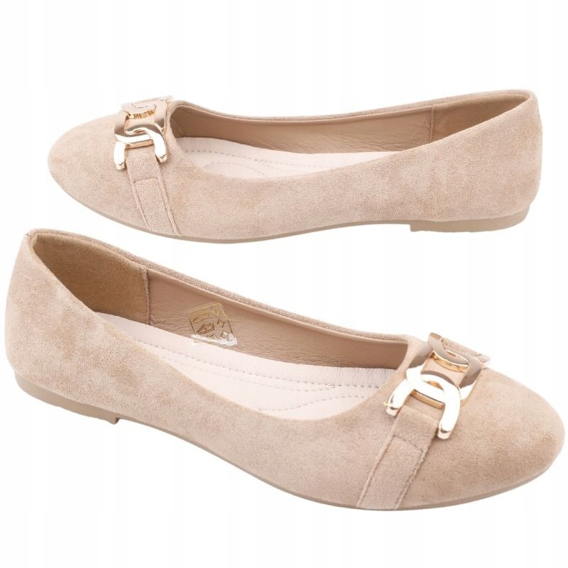 Женские балерины, сделанные из экологической замши. Встроенный на плоскую подошву. Скользил, с округлым носом. Украшен на передней части золотой цепочкой. Внутри оснащен эко -лицевой вставкой.