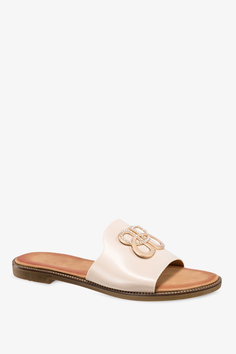 Бежевые женские шлепанцы с широким поясом с золотым украшением Flat R 36