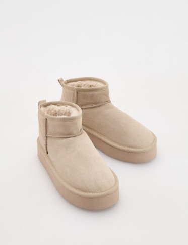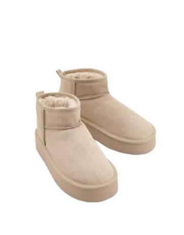 Бежевая скольжение -в классических плоских снежных ботинках на кожи зарезервированной 40 платформы