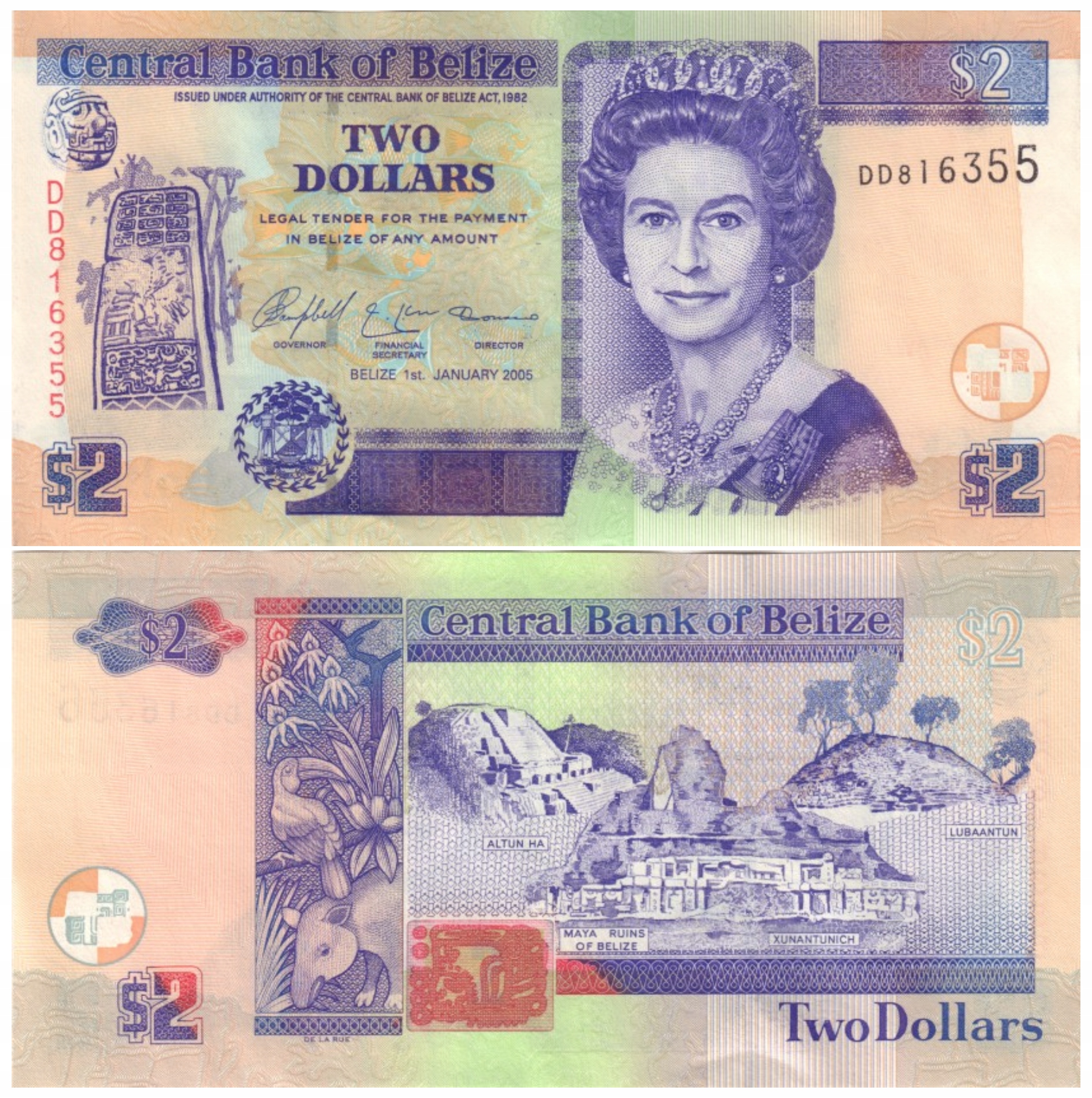 БЕЛИЗ 2 ДОЛЛАРА 2005 ГОДА P-66b UNC ЕЛИЗАВЕТА II