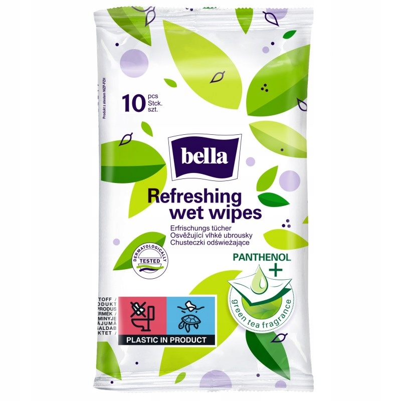 пропитанные салфетки Bella b> обеспечить длительное ощущение освежающего и увлажнения кожи. Экстракт зеленого чая и пантенол эффективно успокаивают и освежают кожу, оставляя на нем приятный запах. Благодаря этому платки - это необходимое оборудование для каждой сумочки!