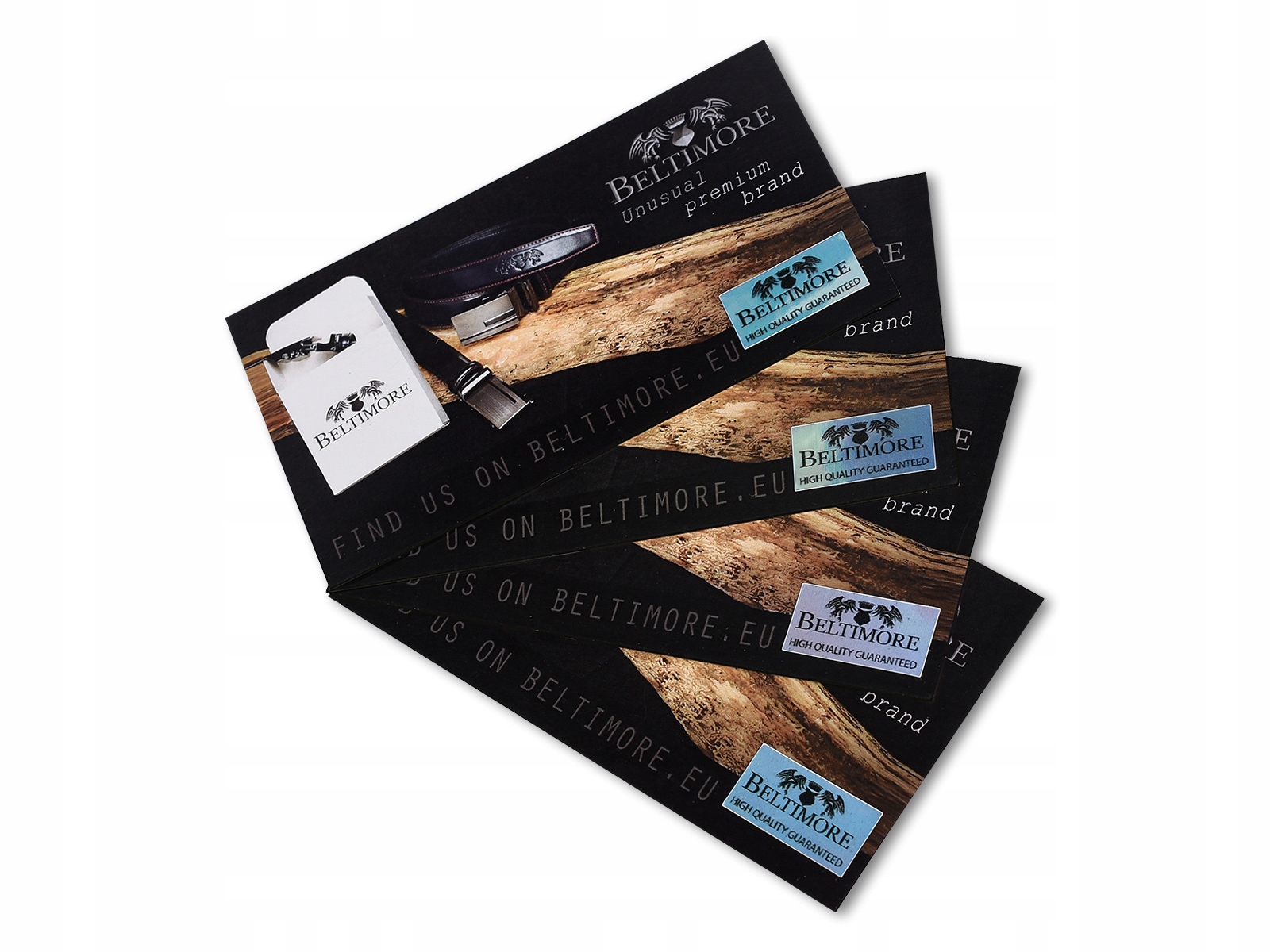 Beltimore — бренд, работающий на европейском рынке, предлагающий в основном кожаные и лямочные ремни и аксессуары. К каждому товару мы прилагаем оригинальную экологическую коробку с логотипом бренда. К ремню мы также добавляем визитку производителя, закрепленную голограммой.