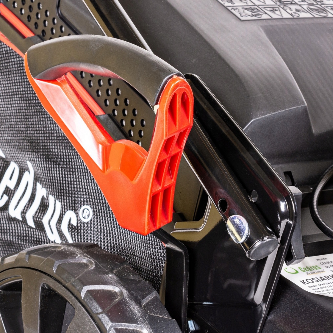 Бензиновая газонокосилка Cedrus KS48 оснащена двигателем мощностью 2,6 кВт (3,5 л.с.) при 2800 об/мин и рабочим объемом 145 см³.