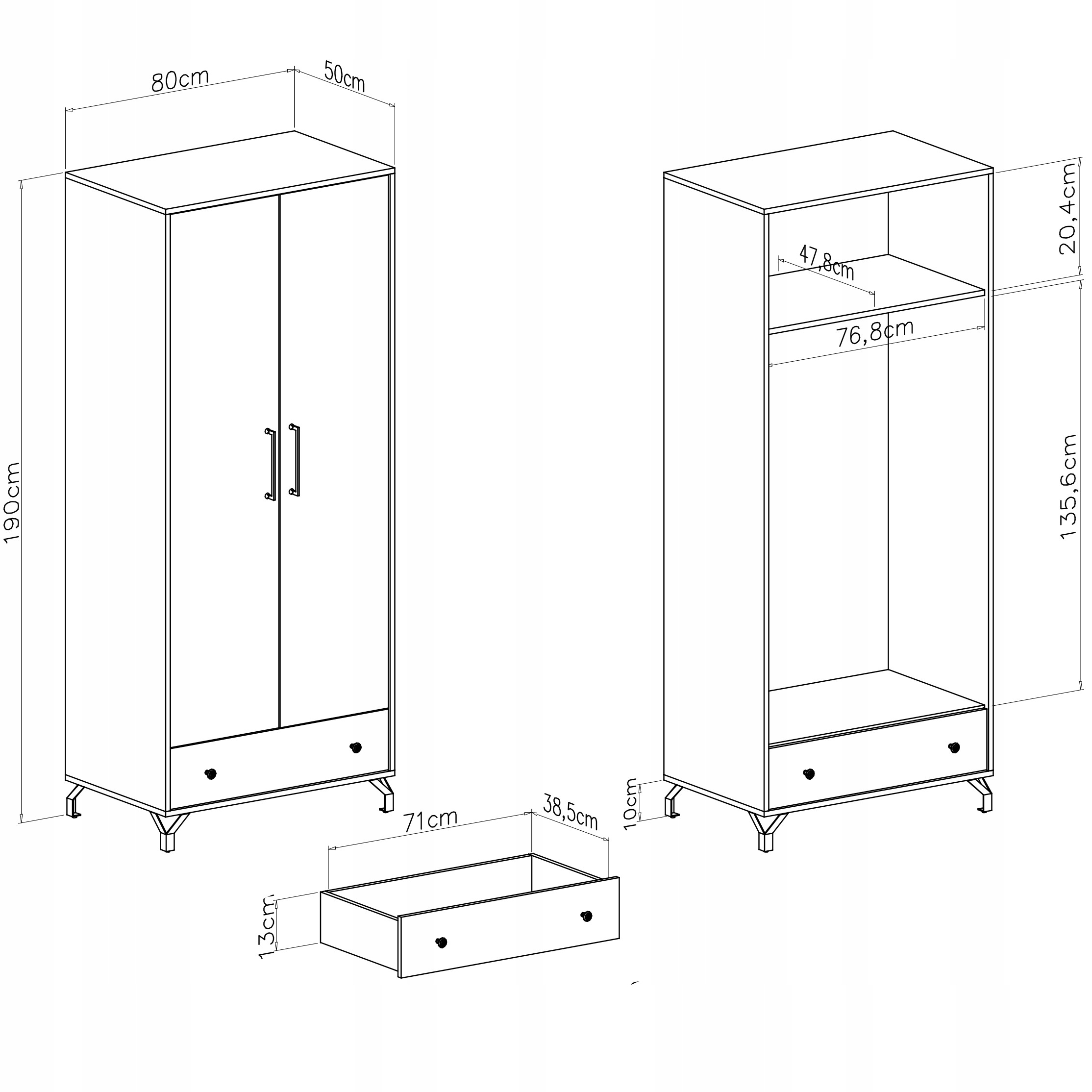 - Белый глянец + белый роскошный -Дор Гардероб с палкой и ящиком - 80 x 190 x 50