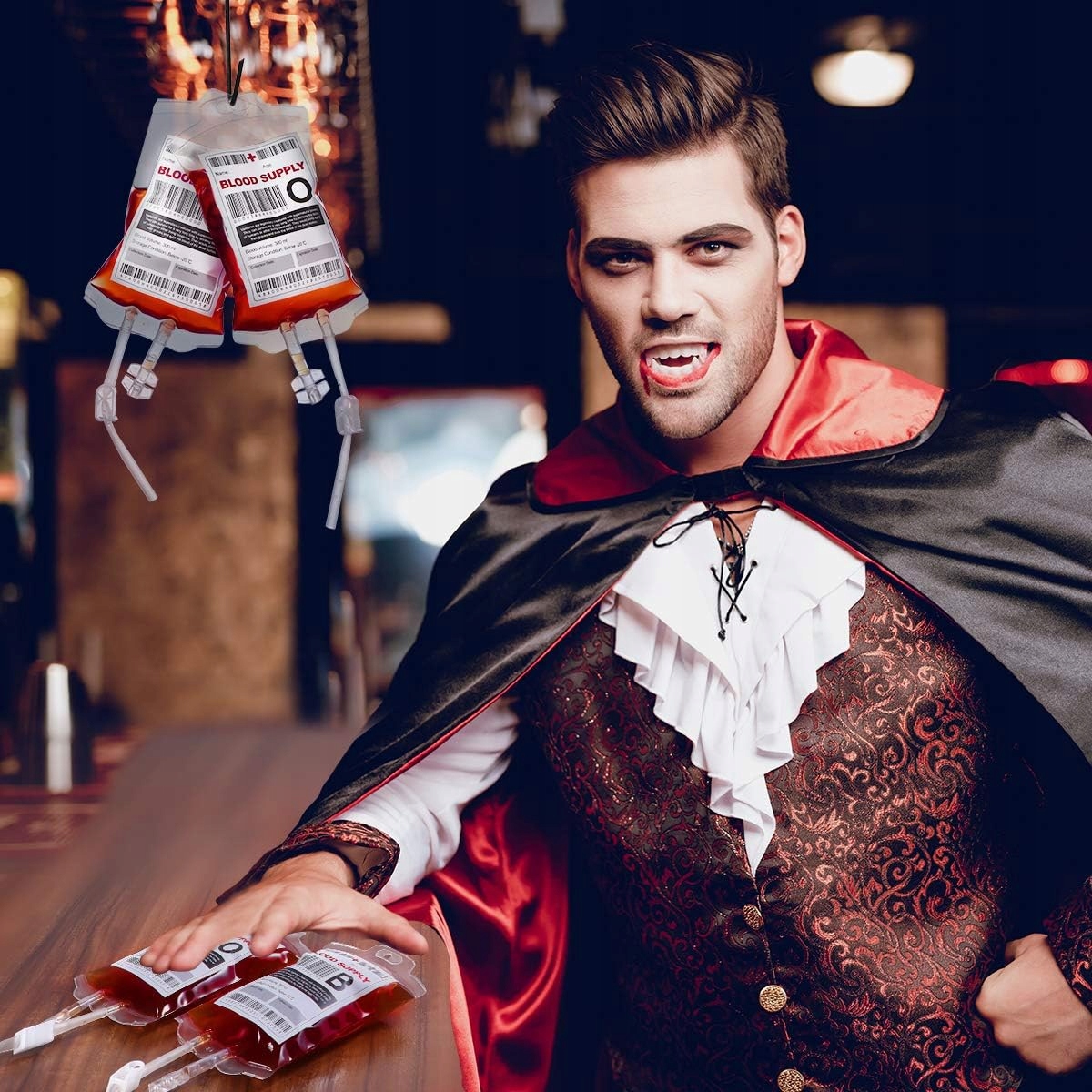 ★ ЧТО ВЫ ПОЛУЧАЕТЕ - 10 пакетов для крови с трубочкой и шприцем, удобных как для переливания, так и для питья. В комплект входят 10 зажимов от проливания и 10 этикеток для украшения.