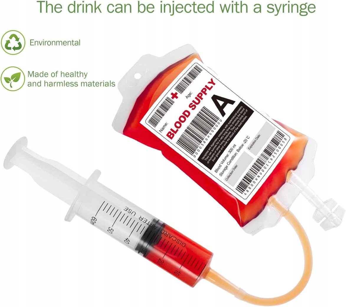 ★ БЫСТРОЕ НАПОЛНЕНИЕ. Соломинка на пакете для крови надевается на шприц, что позволяет быстро наполнять напитки. Вы можете заполнить все 10 мешков с кровью за считанные минуты.