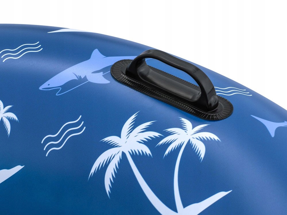 Колесо предназначено для детей от 12 лет и всех взрослых . Максимальная грузоподъемность составляет до 100 кг. Красивый морской дизайн, то есть интенсивный синий цвет с тонкими узорами пальм, волн и акул, привлечет внимание каждого любителя водных игр.