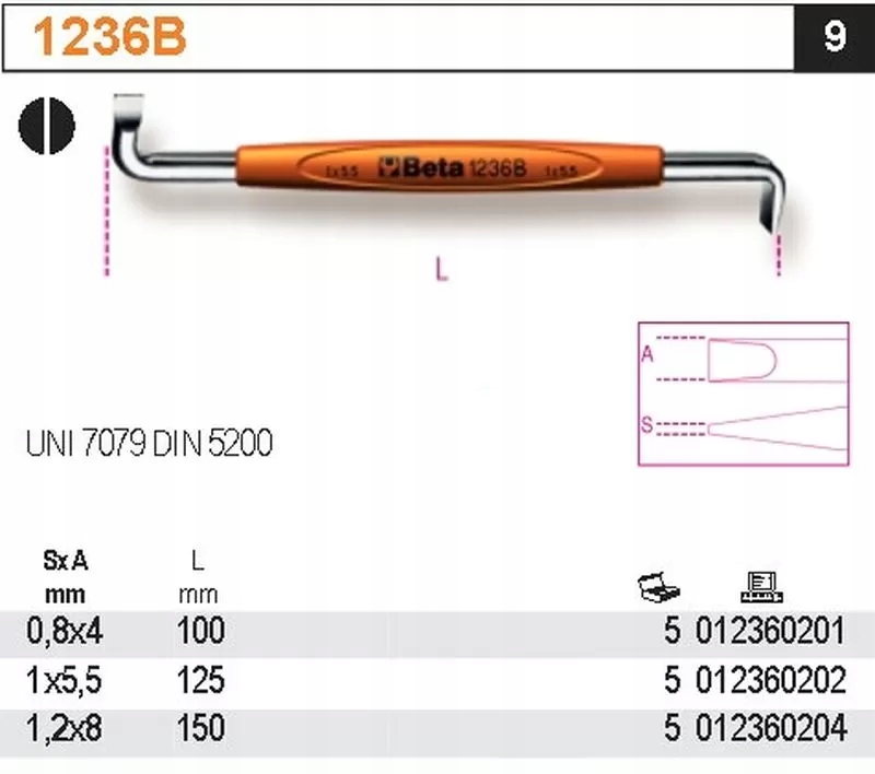 BETA 1236B 1X5.5 Кутова викрутка для гвинтів з шлицем (BETA 1236B/1*5.5)