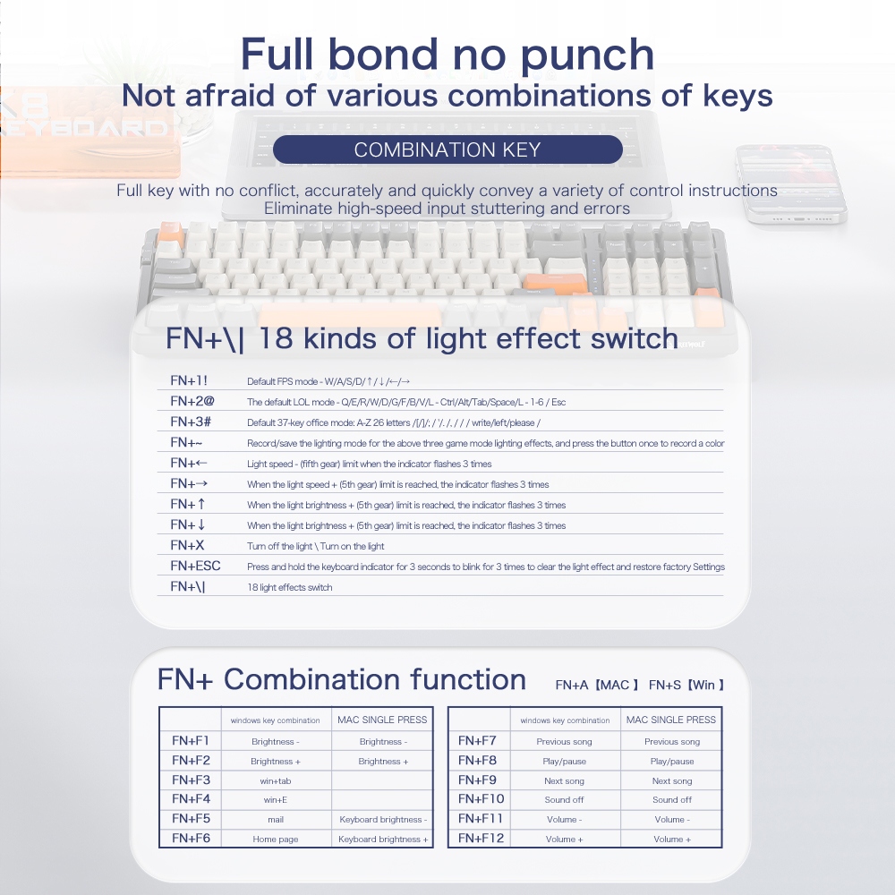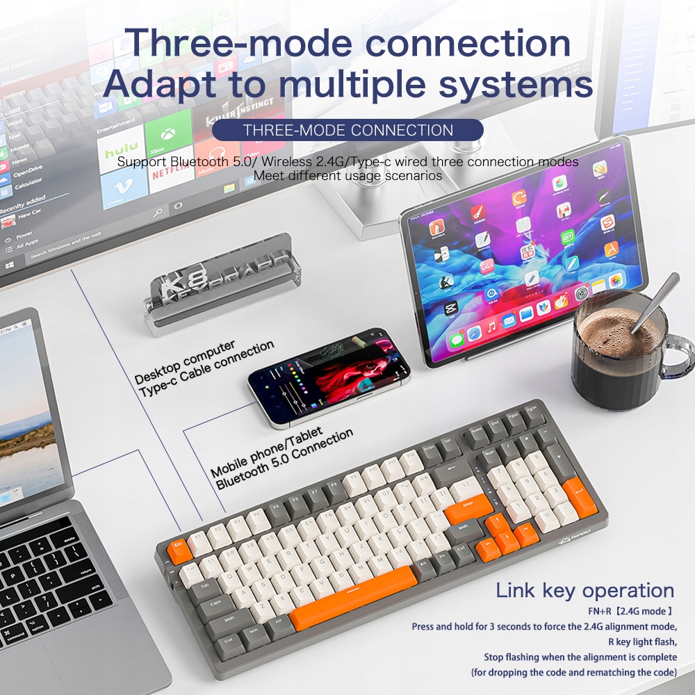 Freewolf K8 Механическая клавиатура беспроводная 76% 100 RGB Ключи