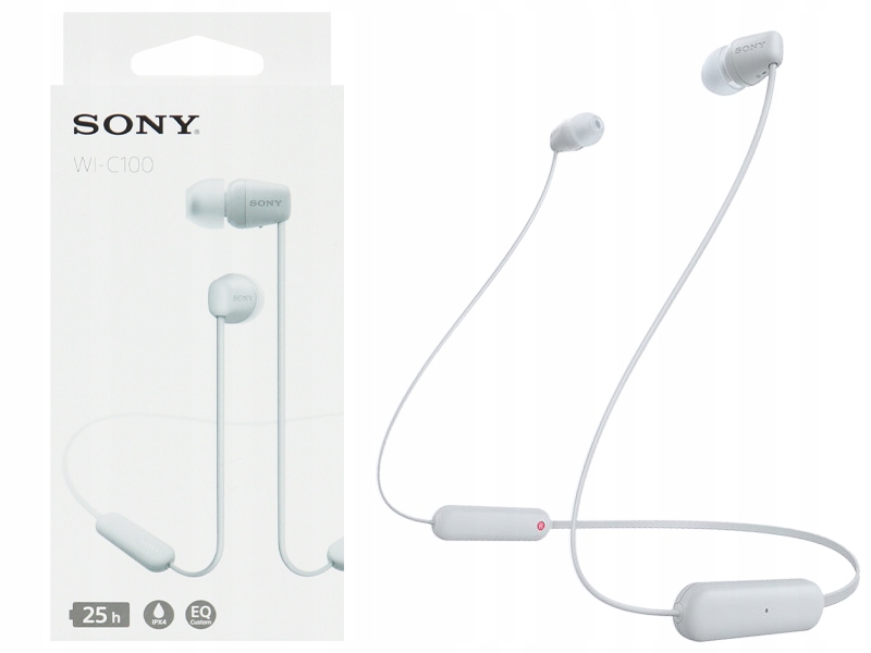 Беспроводные наушники Sony WI-C100 гарантируют вам богатые впечатления от исключительного качества звука. Встроенный аккумулятор позволит вам забыть о необходимости подзарядки на срок до 25 часов. Кроме того, наушники устойчивы к брызгам воды. Работает с приложением Sony | Функция Headphones Connect позволяет настроить звучание наушников Sony WI-C100 в соответствии с вашими индивидуальными предпочтениями.