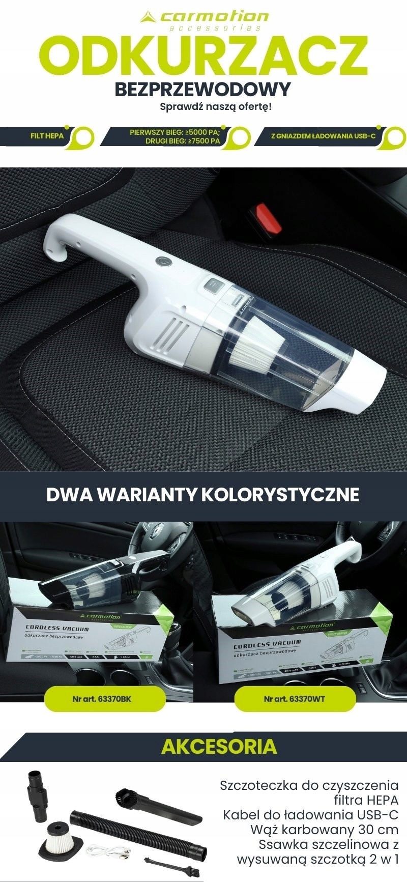 Вакуумный очиститель имеет мощность до 120 Вт! Такая огромная сила в небольшом устройстве, продукт также не требует подключения к источнику питания. Он имеет -в аккумуляторе , что достаточно, чтобы очистить весь автомобиль! Вам не приходится иметь дело с кабелями Tanging , и удивляться, достаточно ли этого, чтобы очистить багажник.