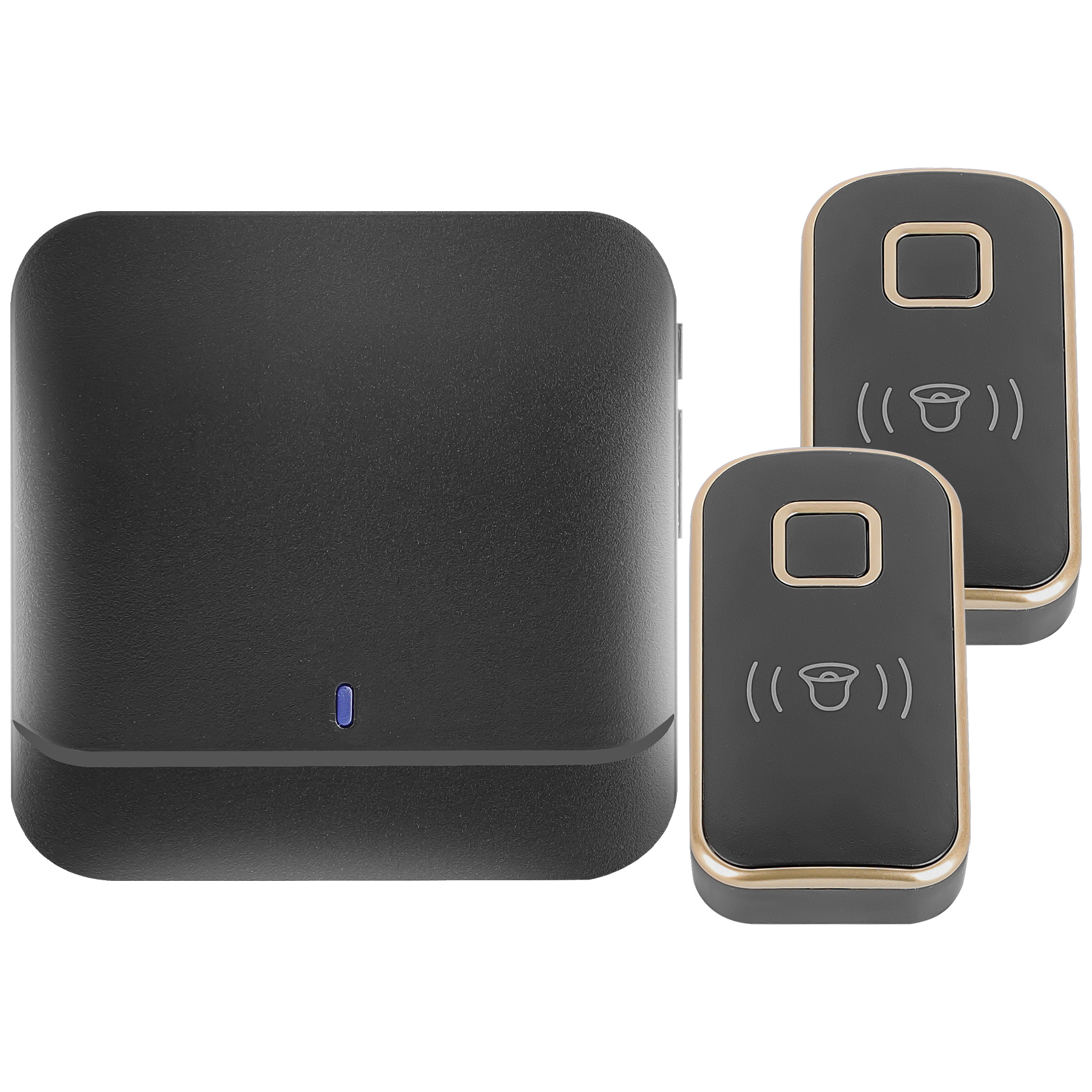 Диапазон 300 м, 2 передатчика, Водонепроницаемый наружный дверной звонок для передней и задней двери с 52 звонками, 4 громкости