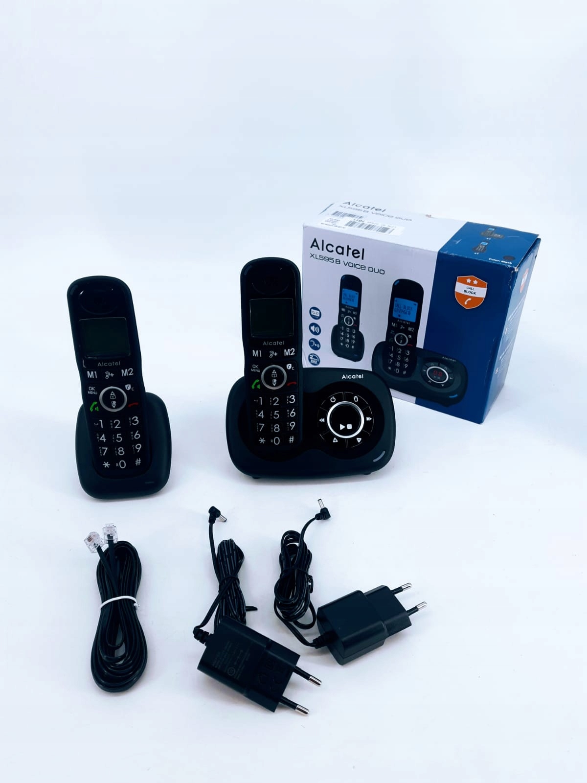 Модель XL595B также оснащена двумя кнопками прямого вызова (M1 и M2) для набора любимых номеров одним нажатием и 3 дополнительных прямых воспоминания (после длительного нажатия). Его каталог вмещает 100 имен и номеров.