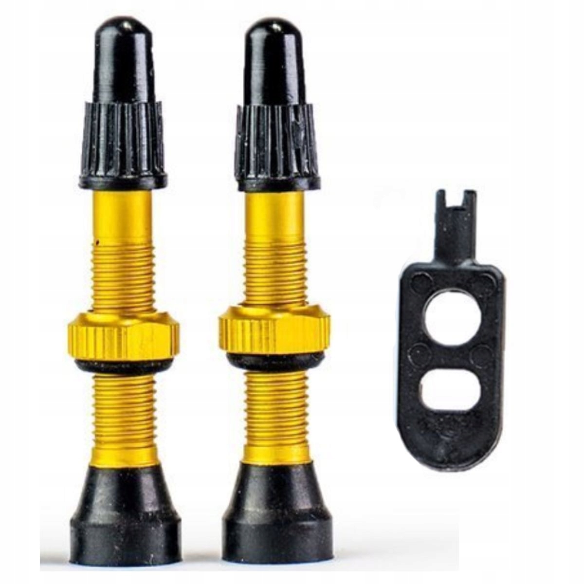 - Алюминиевые клапаны для комплекта уплотнений Tubeless Ready, включая вставки и ключ.