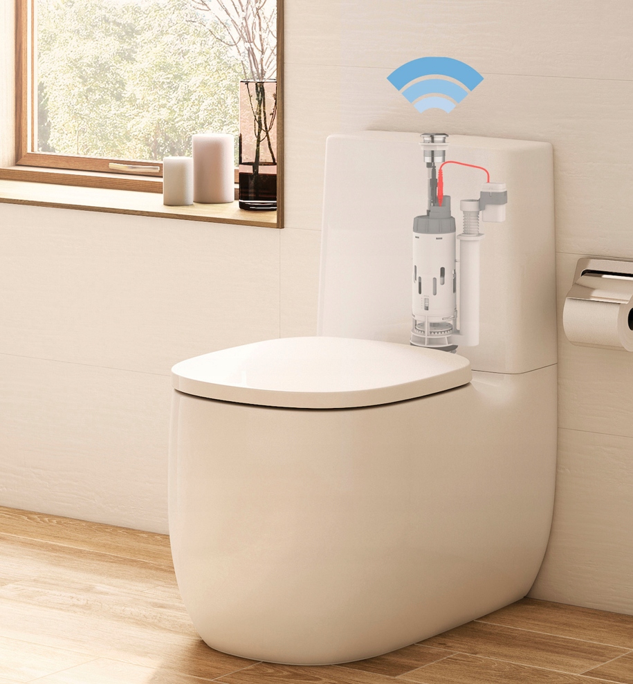 - Встроенный инфракрасный датчик позволяет бесконтактно активировать смыв – большой или малый, в зависимости от движения руки.