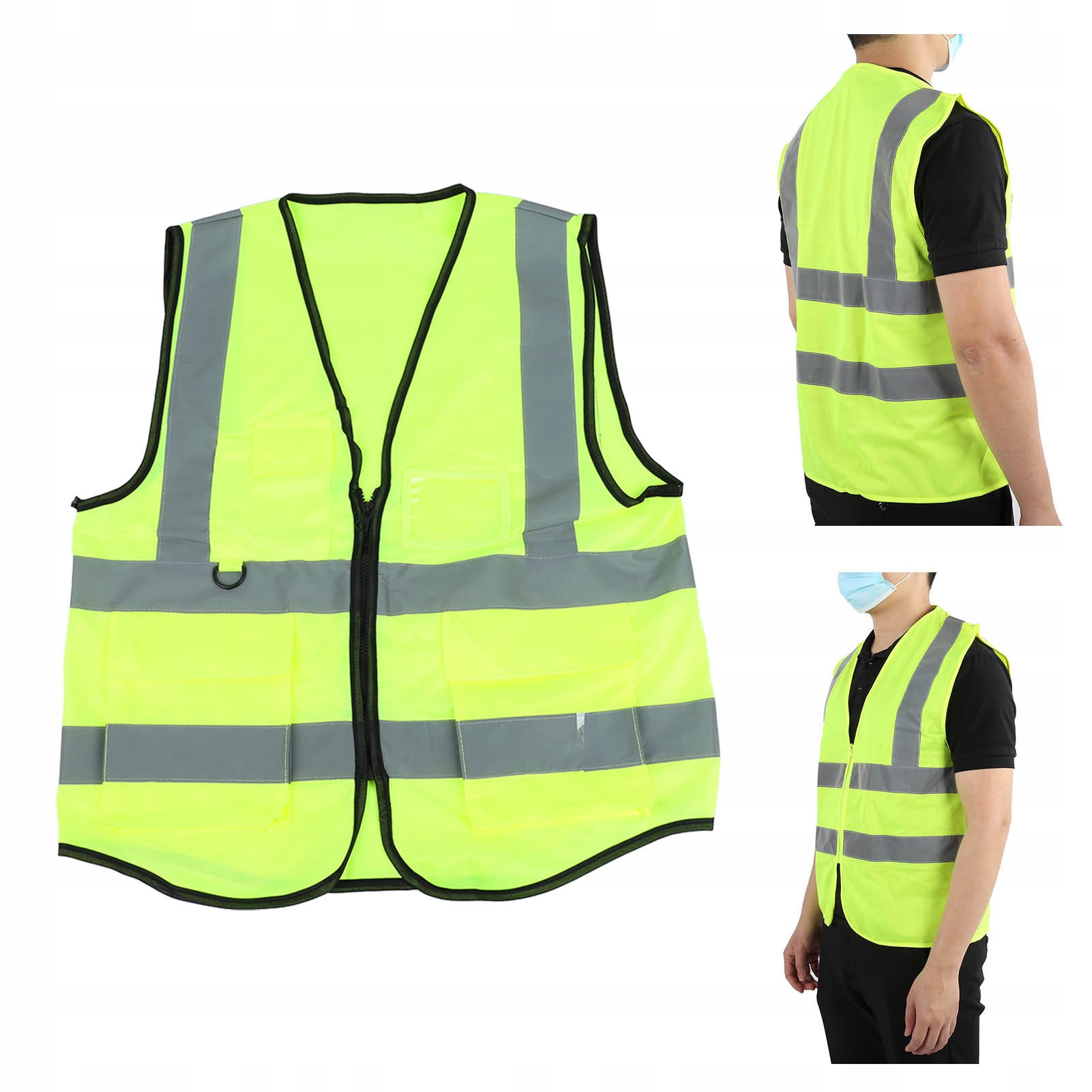 Светоотражающие жилеты Практичный светоотражающий жилет со множеством карманов и застежкой-молнией для контроля дорожного движения на стройплощадке