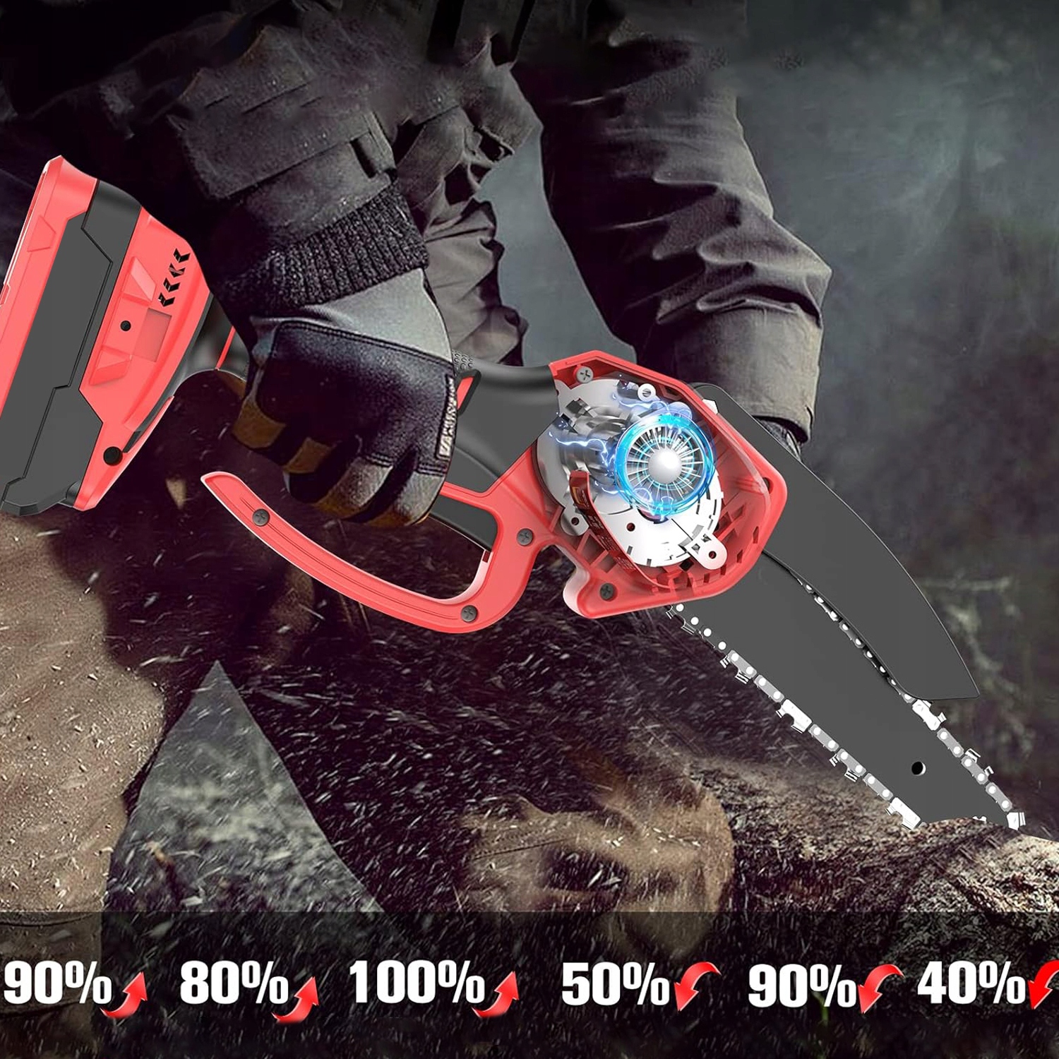 - Ручные электрические бензопилы легкие и снижают усталость рук при резке, что делает их не только более удобными для работы одной рукой, но и более безопасными, чем более тяжелые бензопилы.