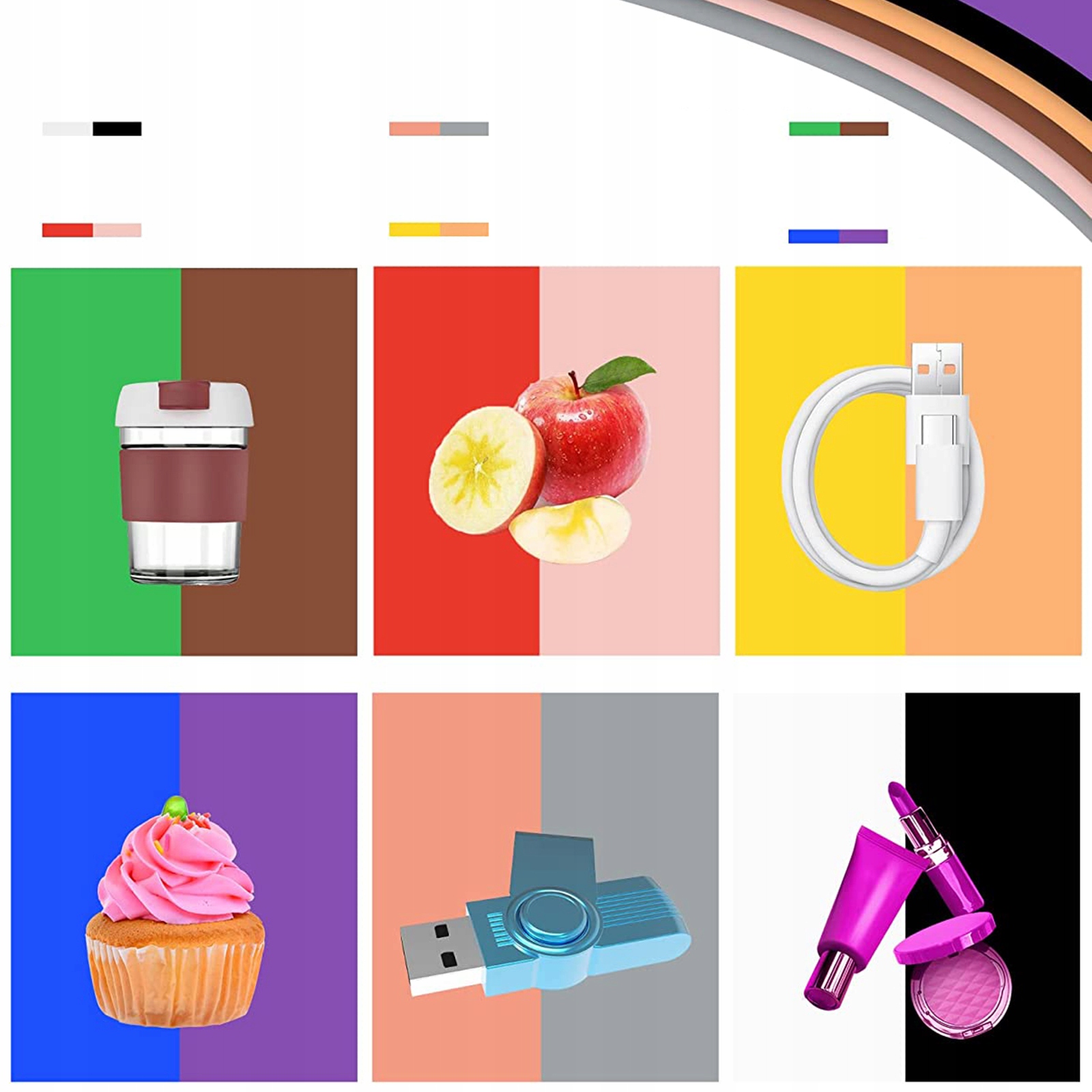 - Фоновая бумага: белая/черная, красная/розовая, желтая/оранжевая, синяя/фиолетовая, зеленая/коричневая. , золотой/серый (6 листов, доступны обе стороны)