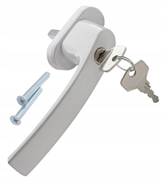 BIAŁA KLAMKA DO OKNA DRZWI Z KLUCZYKIEM ZAMKIEM