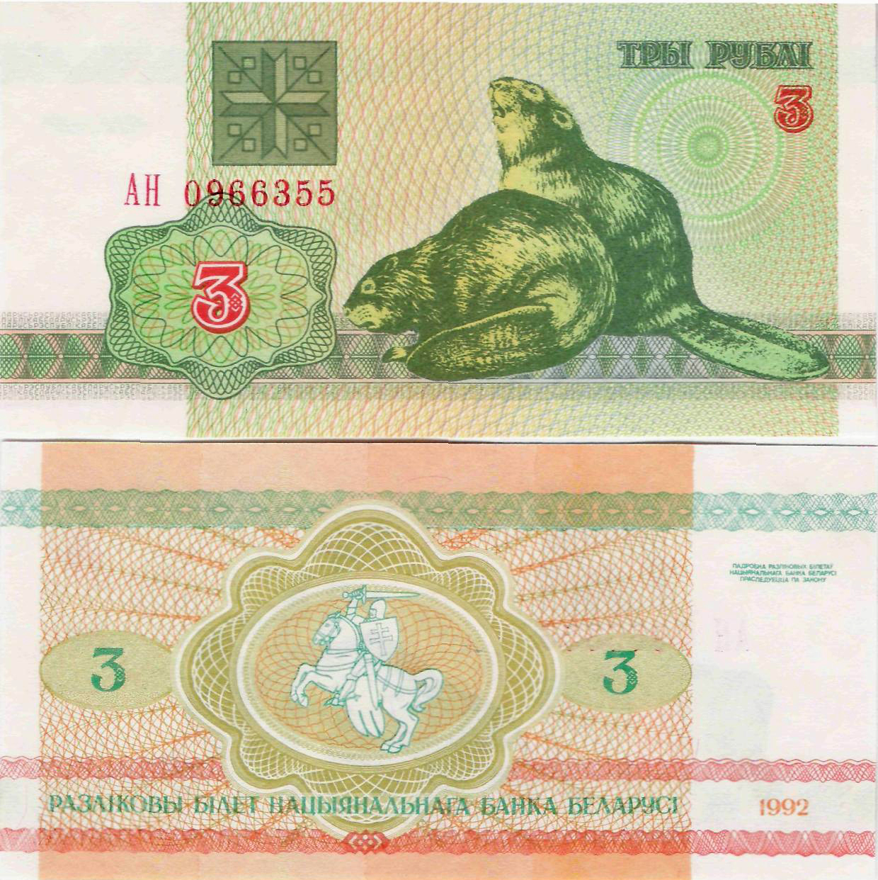Białoruś 1992 - 3 Rubli - Pick 3 UNC
