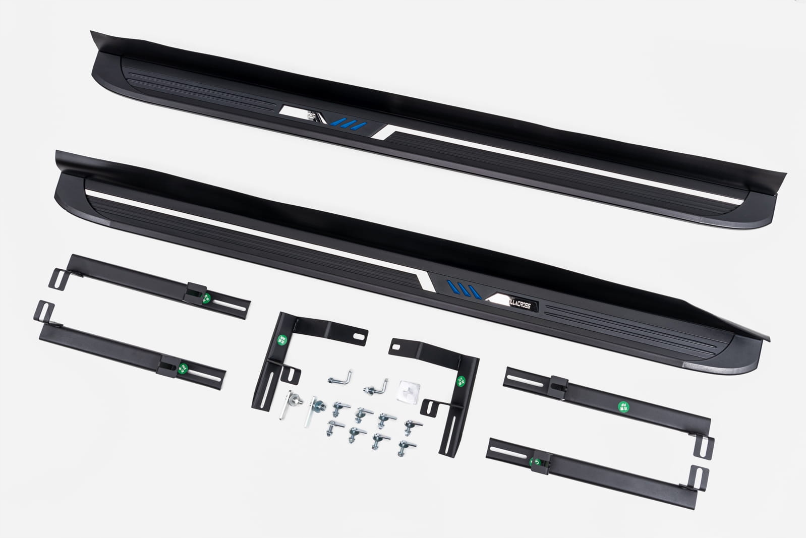 Сторонные шаги были созданы с целью увеличения комфорта при выходе и выходе из автомобиля, а также с учетом принятия более удобной рабочей позиции при размещении нагрузки на крышу автомобиля. Пороги обеспечивают не только удобство, но и повышение безопасности, что особенно важно для детей и пожилых людей.