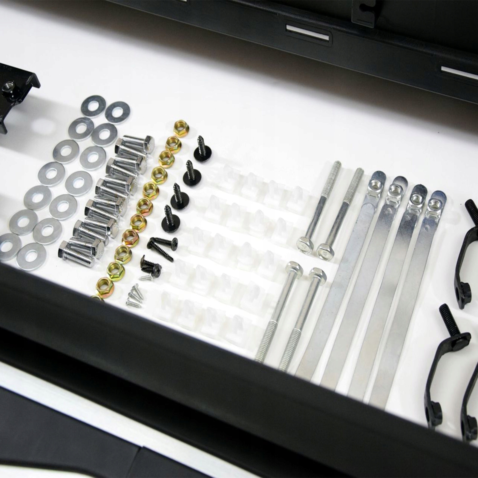 В автомобиле не нужно сверлить никаких отверстий, все кронштейны крепления монтируются в технологические отверстия автомобиля.