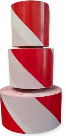Белая и красная предупреждающая лента 70 мм 200 м. Обозначение без клея 25mic