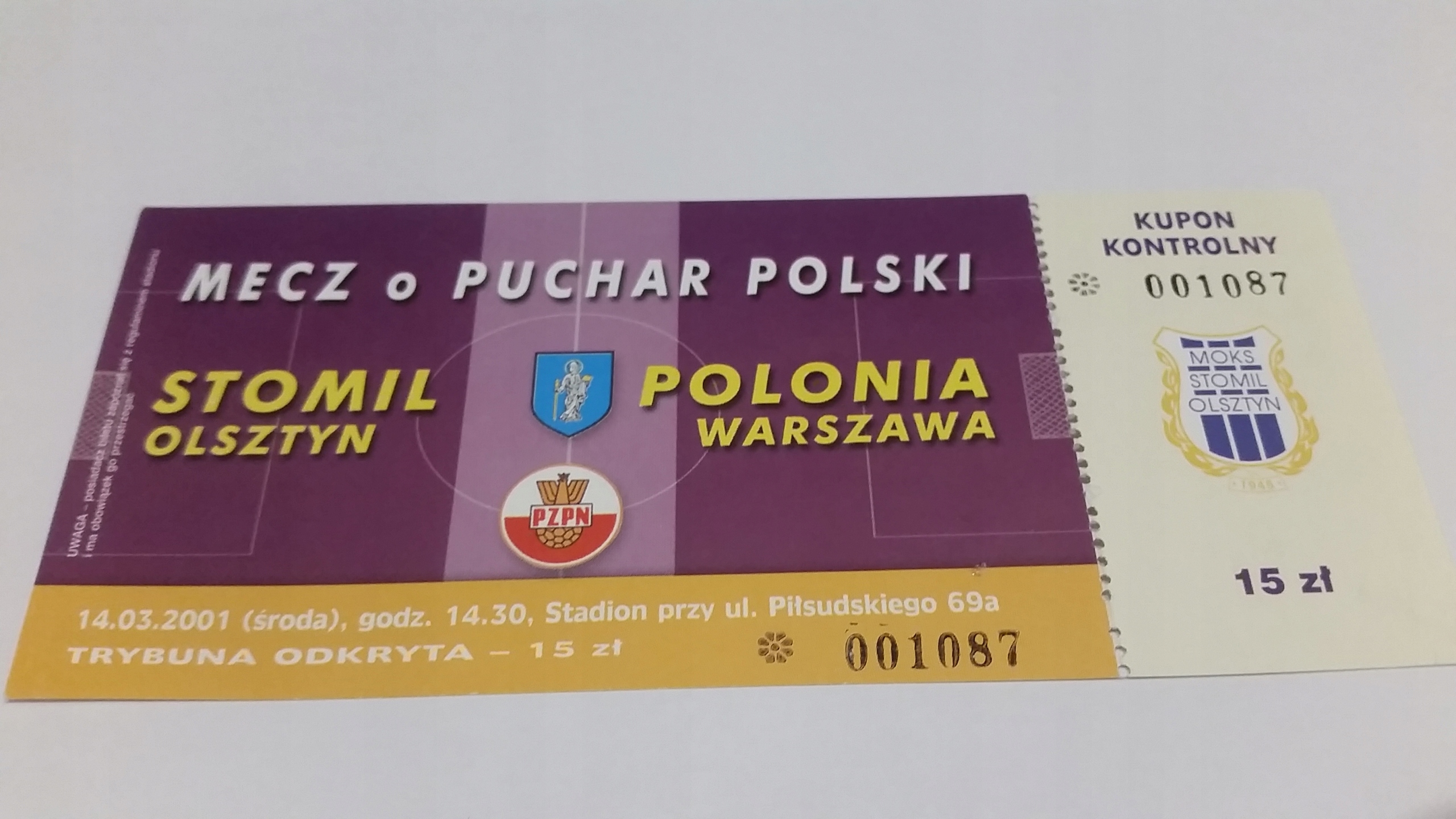 bilet STOMIL Olsztyn - POLONIA Warszawa 14.03.2001