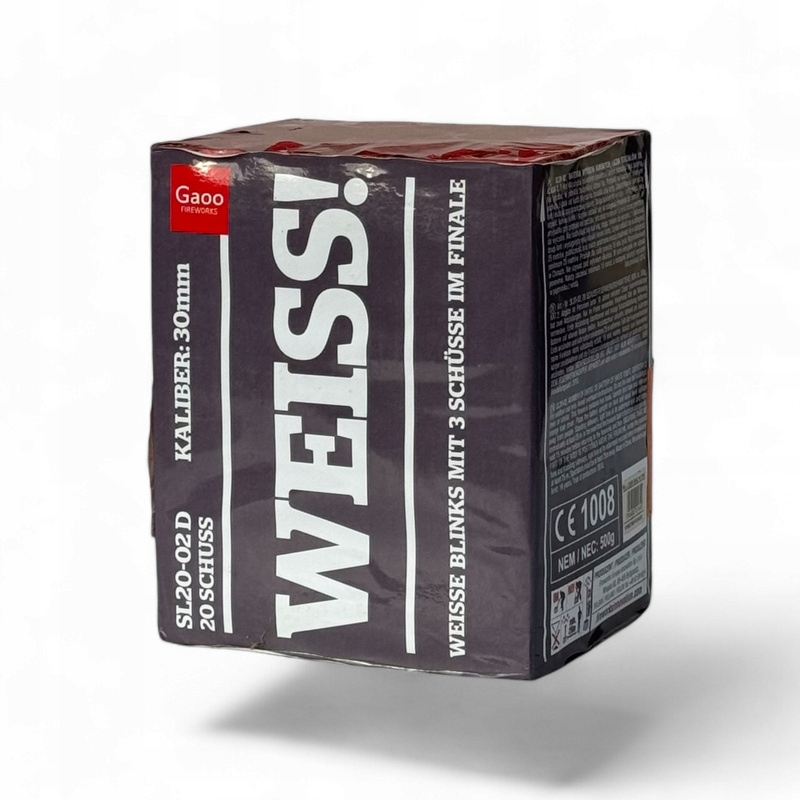 White 20 выстрелов Fireworks - это эффективный пиротехнический продукт от Gaoo Management, который обеспечит привлекательное зрелище во время ваших праздников. Эта батарея из калибра 20 30 мм создает эффекты белого освещения в небе, осветляя пространство во время шоу, продолжительностью около 40 секунд.