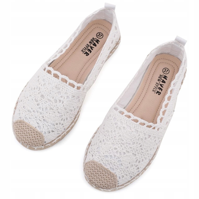 ЖЕНСКИЕ ЭСПАРДИЛЕЛИ, КРУЖЕВНЫЕ, СЛИПОНЫ, ЛЕГКИЕ ТУФЛИ НА ПЛОСКОЙ ПЛОСКОСТИ, БЕЛЫЕ