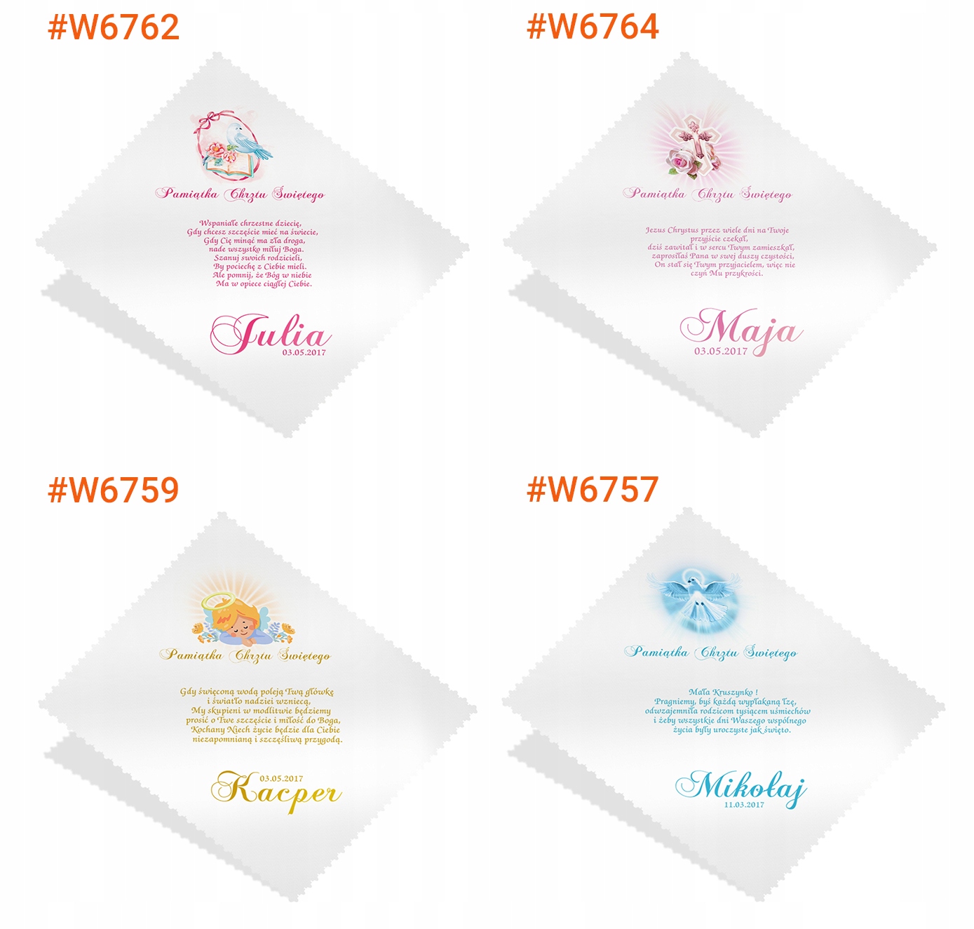Мы представляем десять моделей одежд для крещения в различных сочетаниях. Каждый из них посвящен ребенку, которому предстоит Святое Крещение. Вы найдете стили, предназначенные для мальчиков и девочек. Декоративные элементы всех комплектов делают халат очаровательным сувениром Святого Крещения. Настоящим сюрпризом станет белый крестильный халатик с именем ребенка. Посвятите одежду для крещения, указав свое имя и дату церемонии, а также свое посвящение или пожелания. Выразительный принт сохранит свой вид на протяжении многих поколений. Соответствующие рисунки тонко отличают каждое изделие, вы можете легко выбрать одно из них.