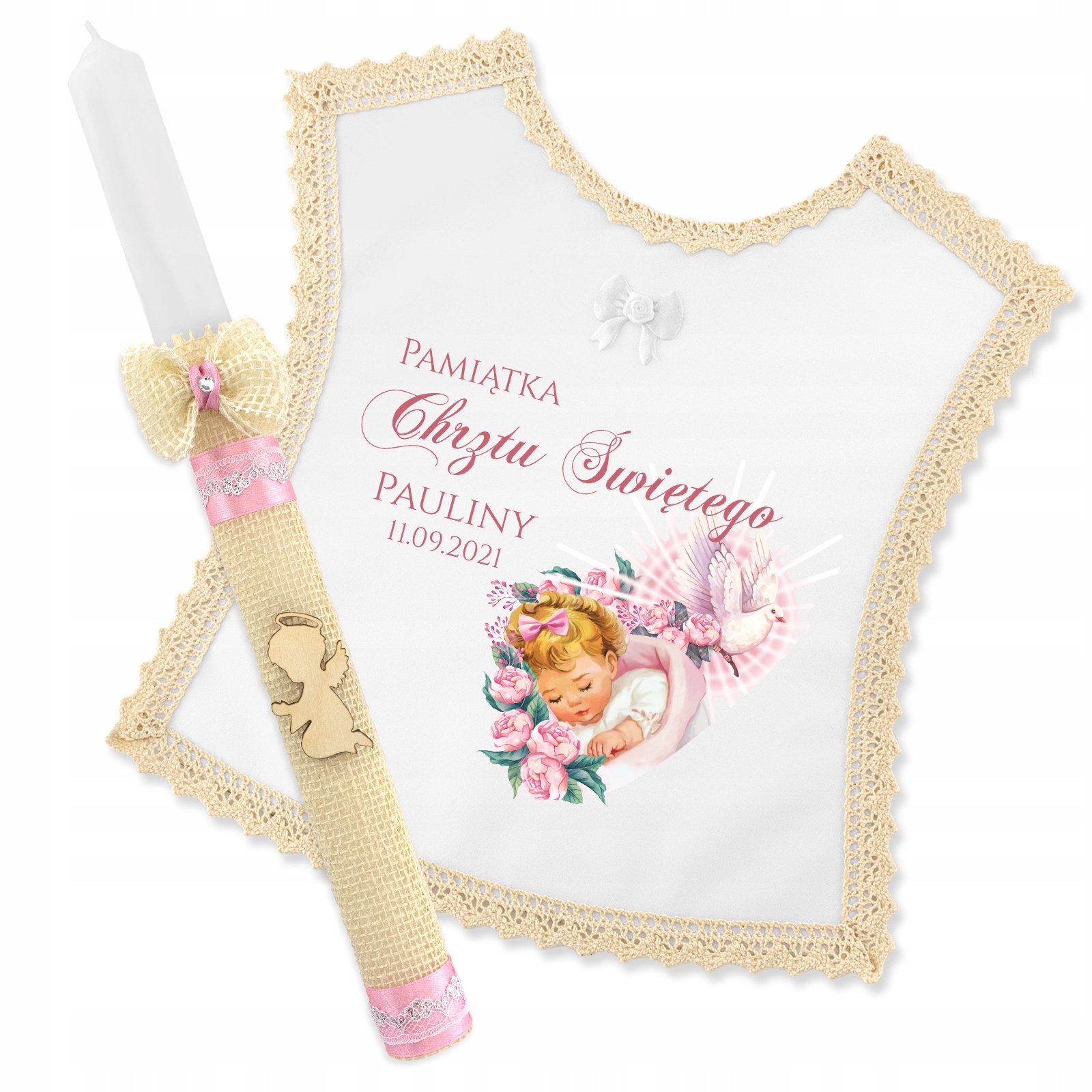 Элегантный набор из свечей и ткани для крещения. Представляем нашумевший набор, посвященный ребенку, которого будут крестить. Декоративные элементы делают ризу и свечу очаровательным сувениром о Святом Крещении. Настоящим сюрпризом станет белый крестильный халатик с кремовым кружевом с именем ребенка. К халату прилагается свеча с деревянным ангелочком. Это, безусловно, придаст всему этому уникальный характер. Посвятите набор для крещения, назвав свое имя и дату церемонии. Выразительный принт сохранит свой вид на протяжении многих поколений. Свеча – это мастерство ручной работы, которое порадует каждого человека.