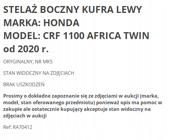 Боковая рама багажник L Honda CRF 1100 Африка 19 +