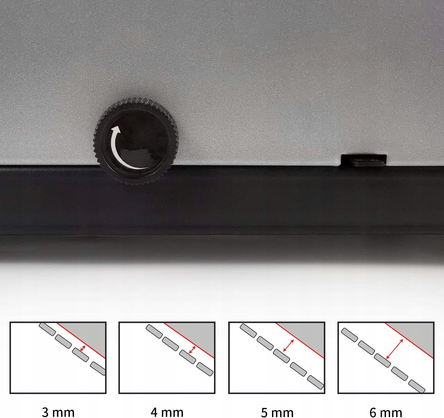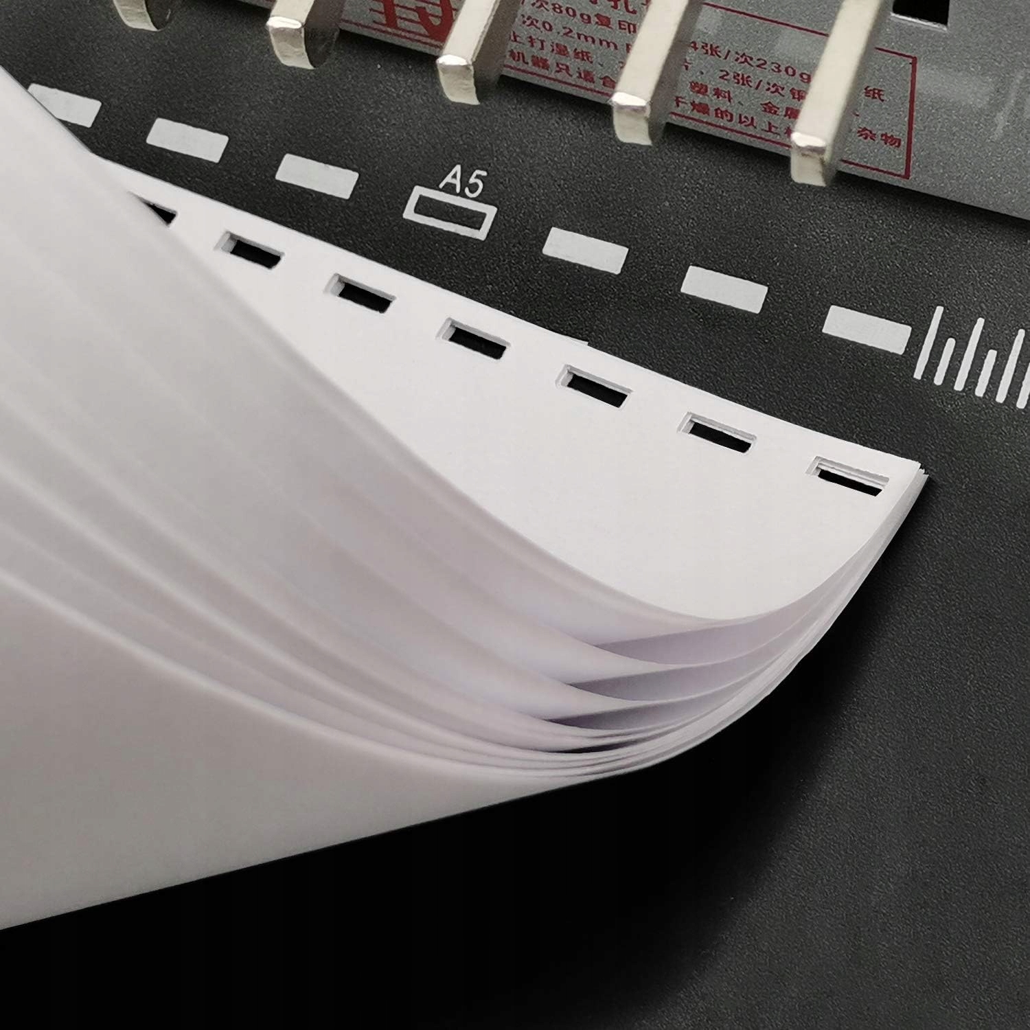Многофункциональная бумажная дрель является идеальным инструментом для всех, кому нужно эффективное решение для связывающих документов. Благодаря возможностям, связанным с бурением до 12 листов в то же время, и связывающую до 200 листов бумаги с весом 75 гсм, вы можете легко создать профессиональные ноутбуки, отчеты или презентации. Набор также включает в себя вставки для детализации от 1 до 21 , что позволяет настроить количество отверстий в соответствии с потребностями, а также возможность подключения более мелких групп документов на одном листе.