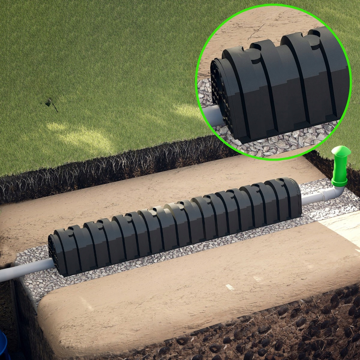 - Очистка оснащена туннельным дренажем. Основным преимуществом дренажа является небольшая поверхность распределения. Поэтому это рекомендуется для участков с небольшой площадью. Или встроенные сюжеты, чтобы избежать больших раскопок.