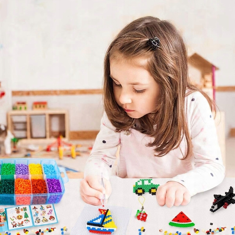Набор из 5000 бусин с фурнитурой вызывает у ребенка желание расставлять и играть, он сможет создавать сказочно красочные картинки различной формы, возможностей много – ребенок может создавать различных персонажей, животных, и т. д.