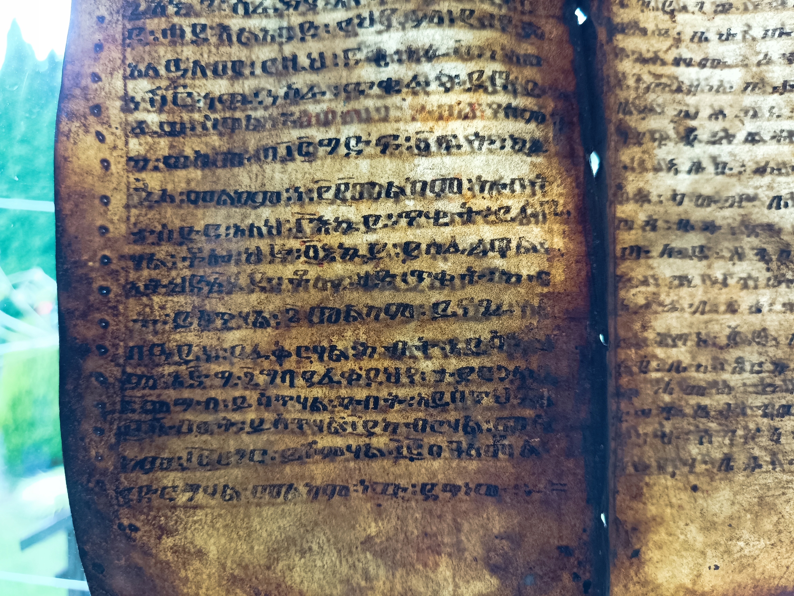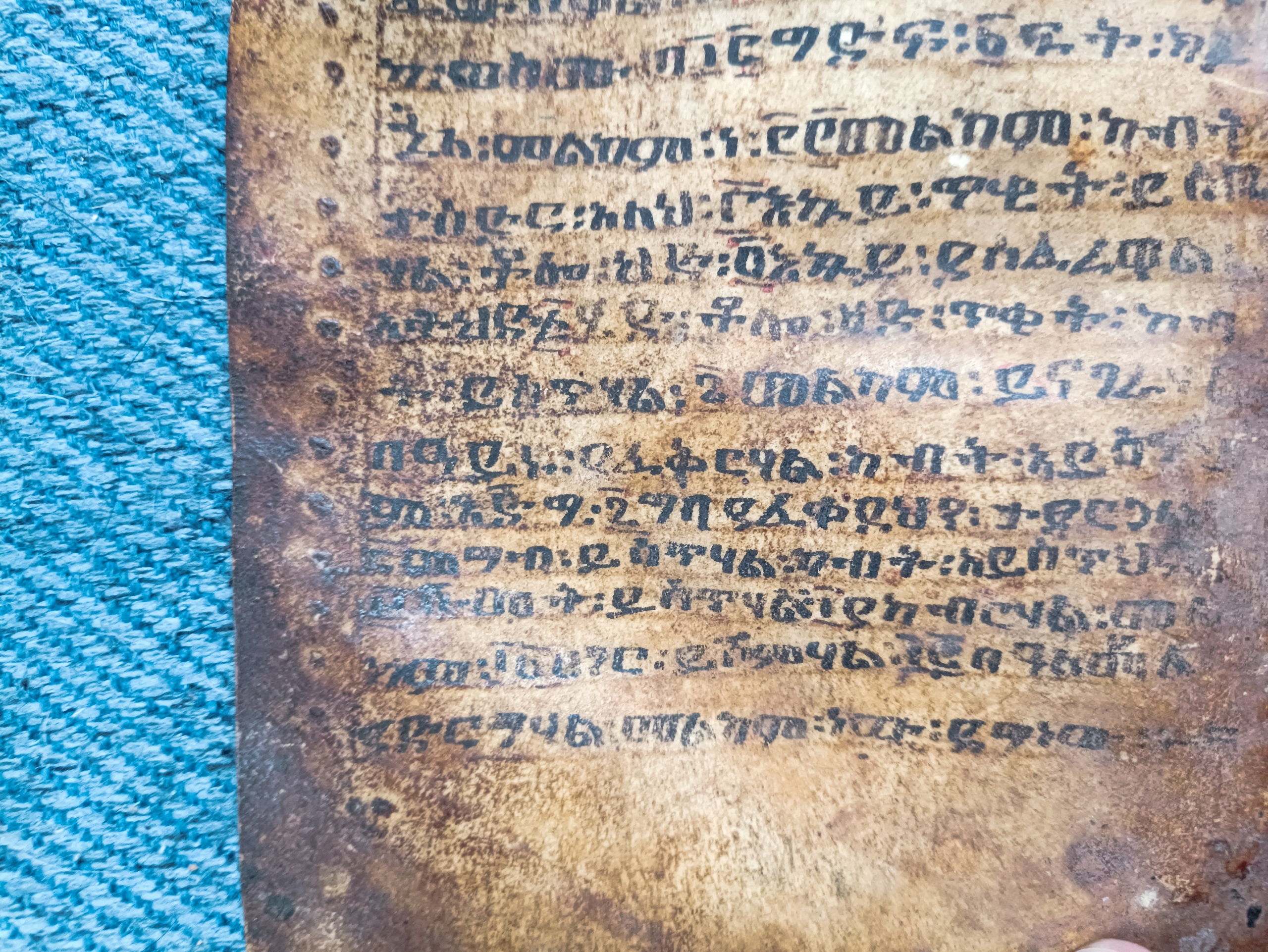 Трудно определить, что старо, потому что Geez - это мертвый язык. Он прекратил использоваться в 10-10-м веке. Затем он существовал только в литературных и литургических текстах. В отличие от других семитских языков, Гиз написан слева направо. Тщательно вы можете оценить создание рукописи в 17-18-м веках, но это также может быть намного старше.
