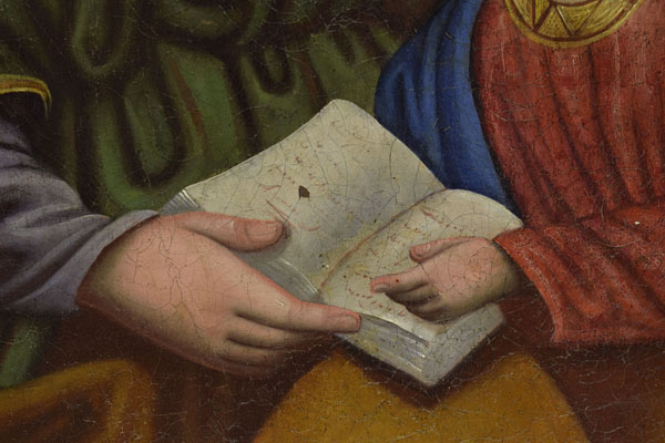 Около 1850 года старая картина, святой. Анна с маленькой Марией, нефтью, дублированным холстом. h1> Старая масляная живопись, нарисованная на холсте, расположена на растяжке. На картине представлена религиозная сцена, показывающая, как святая Анна учит молодую Марию читать. Святой. Анна, с осторожностью, охватывает Марию, наклонившись над открытой книгой. Изображение подвергалось обслуживанию, второй холст был добавлен для защиты и укрепления исходного холста. h1> Условие изображения хорошо видно. На изображениях мы приглашаем вас просмотреть прикрепленные фотографии. h1> Размеры: h1> 63x47,5 см. Изображение.