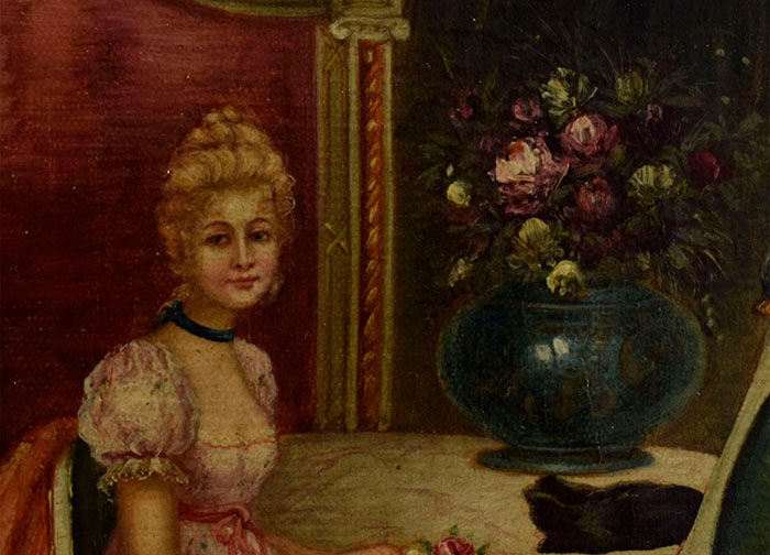 Около 1880-1900 гг. Старая живопись, парная встреча, стиль империи, масло, ссылочный номер h1> старая масляная живопись, нарисованная на холсте, расположенном на носилках, изображая пару встреч, это картина, нарисованная в стиле Империи. Изображение подписано, неразборчивая подпись. h1> Империйный стиль - это направление в искусстве, архитектуре и дизайне, которое развивалось в Европе в начале 19 -го века, главным образом во время правления Наполеона Бонапарта. Этот стиль характеризуется элегантностью, монументальностью и влиянием классицизма, а также отражает стремление к власти и славе. В живописи и скульптуре этот стиль часто фокусируется на исторических и мифологических предметах, с большим акцентом на драму и движение. Стил -империя оказала значительное влияние на разработку более поздних стилей, таких как стиль Бидермиера или стиль второй империи, и его наследие все еще видно в современном дизайне и внутреннем украшении. Szlamtel. h1> Кадра не является предметом аукциона, это бесплатное дополнение к изображению.