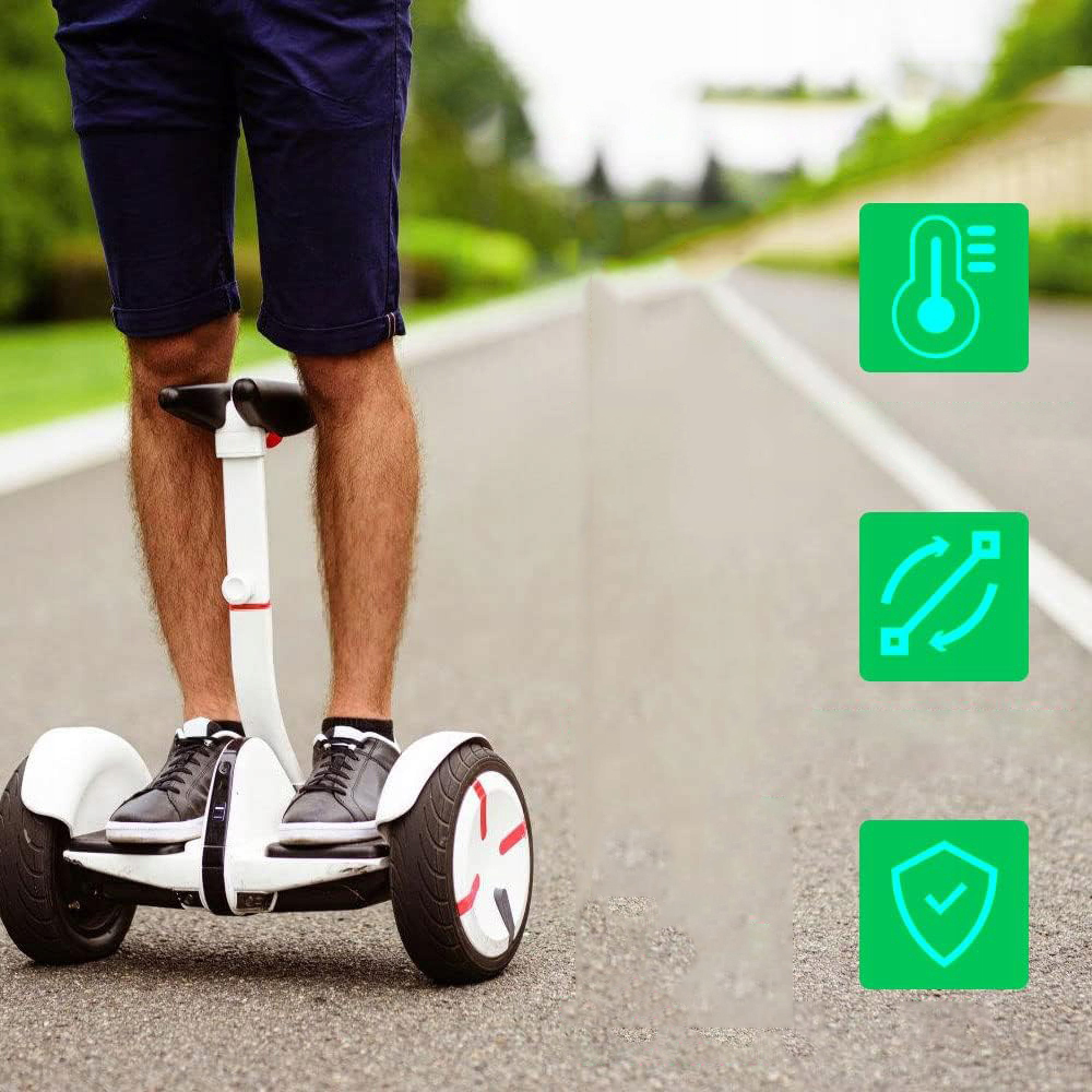 Электрический скутер имеет индикатор зарядки светодиода. Красный диод означает зарядку батареи, зеленый - полный заряд и зеленый - разъединение или отсутствие зарядки. Зарядное устройство отключается автоматически после полной зарядки. Время зарядки зависит от емкости аккумулятора, но полный заряд обычно длится от 4 до 6 часов.