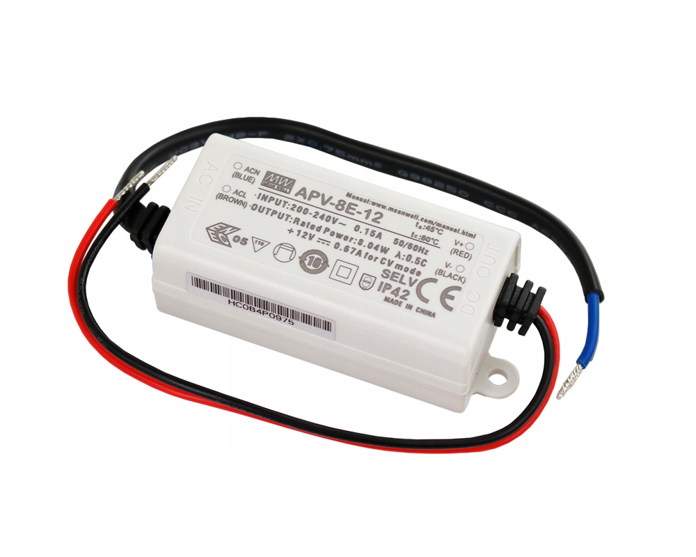 Блок питания Mean Well APV-8-12 представляет собой импульсный источник питания для светодиодов с мощность 8 Вт и выходное напряжение 12 В постоянного тока. Это один из самых маленьких блоков питания постоянного напряжения от бренда Mean Well, одного из ведущих производителей блоков питания в мире.