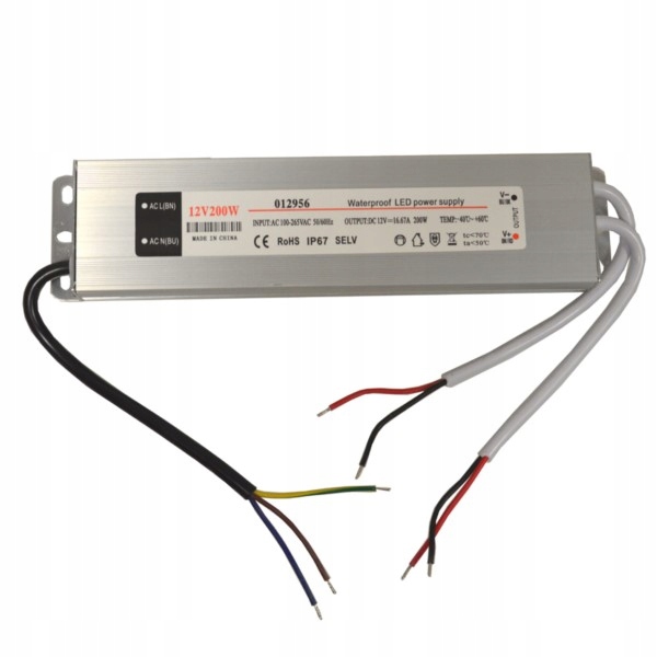 БЛОК ПИТАНИЯ СВЕТОДИОДОВ 12 В, 200 Вт, ТОНКОЕ НАПРЯЖЕНИЕ, IP67