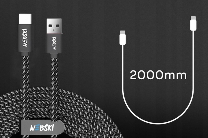 с кабелем Webski USB-A — USB-C — PD, QuickCharge 60 Вт, 480 Мбит/с — длина 200 см