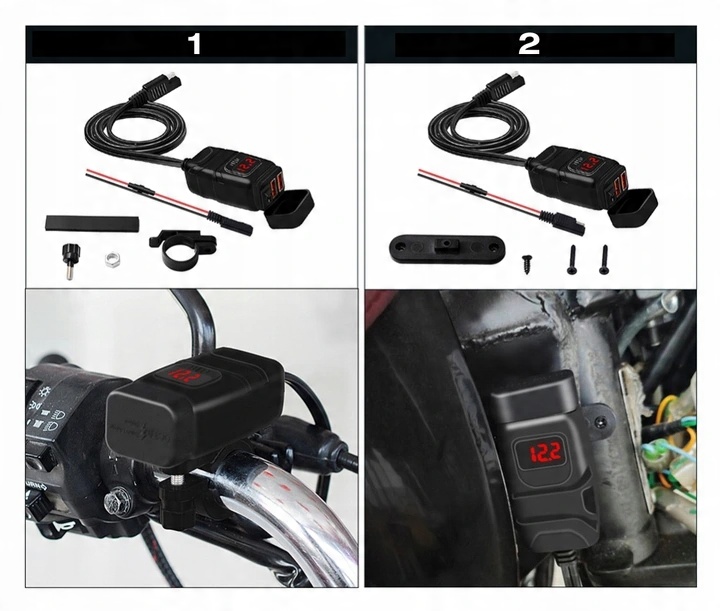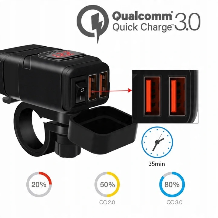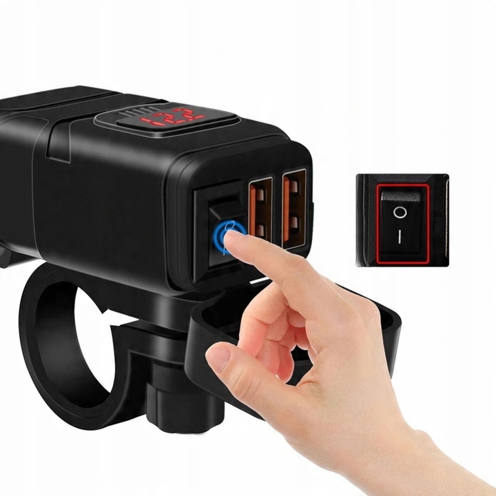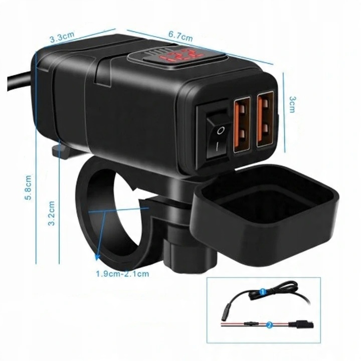 Зарядное устройство для мотоцикла 2x QC3.0 + ВОЛЬТМЕТР + КНОПКА: