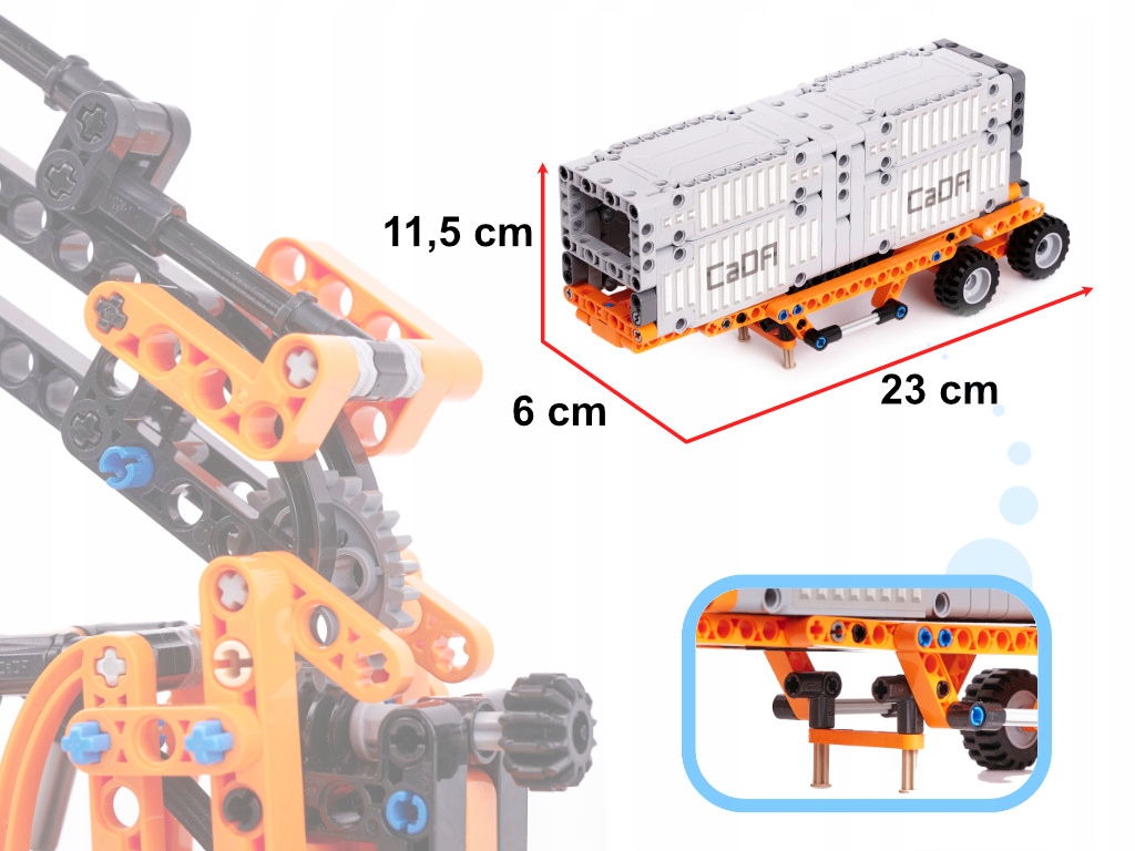 Большим преимуществом набора является то, что транспорт действительно может ездить! Установив специальный механизм, вы заставите грузовик двигаться. Вам не нужны батарейки, механизм работает от встроенного аккумулятора, зарядить который можно с помощью кабеля, входящего в комплект.