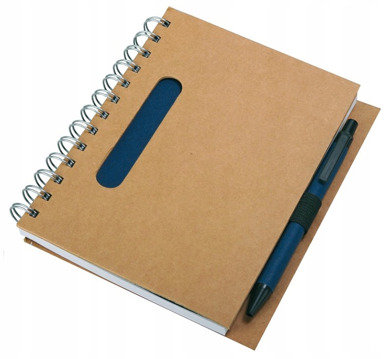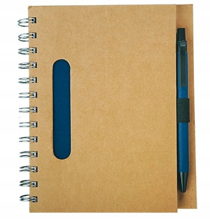 Блокнот 70 линованных листов формата В6 из переработанной бумаги с ручкой, размеры 137х10х10 мм, пластиковые детали биоразлагаемые