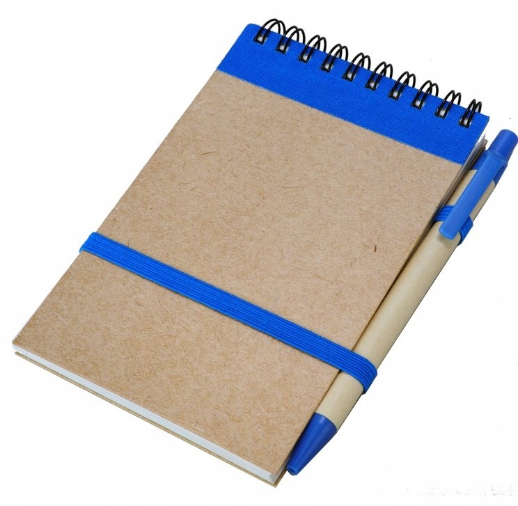 Блокнот с ручкой на 70 гладких листов. Бумага изготовлена из переработанного сырья, пластиковые детали биоразлагаемы.
