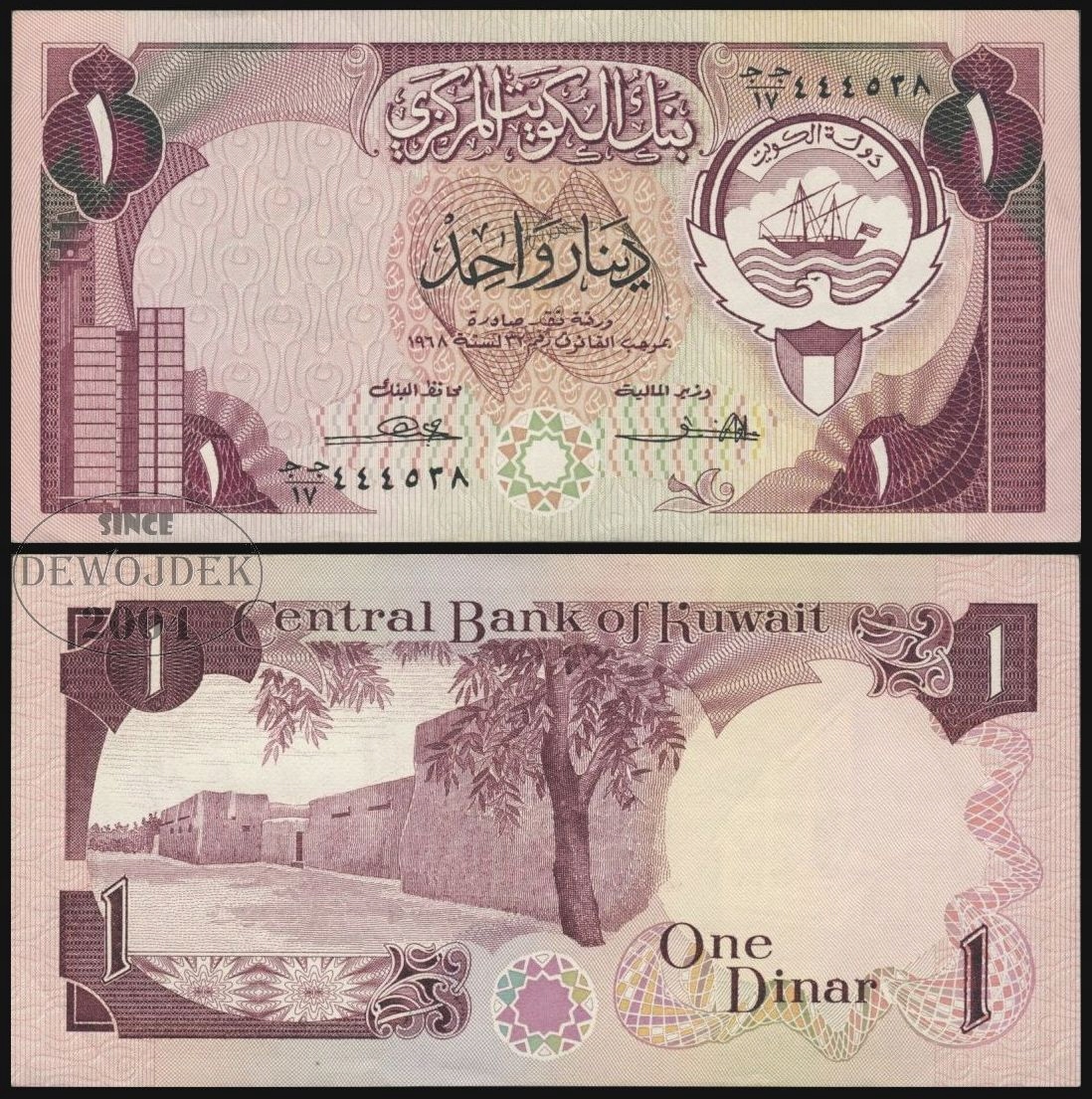BNA - KUWEJT 1 Dinar 1968 (1980) CC/17 # P13a # PODPIS 2 # RZADKI # XF+