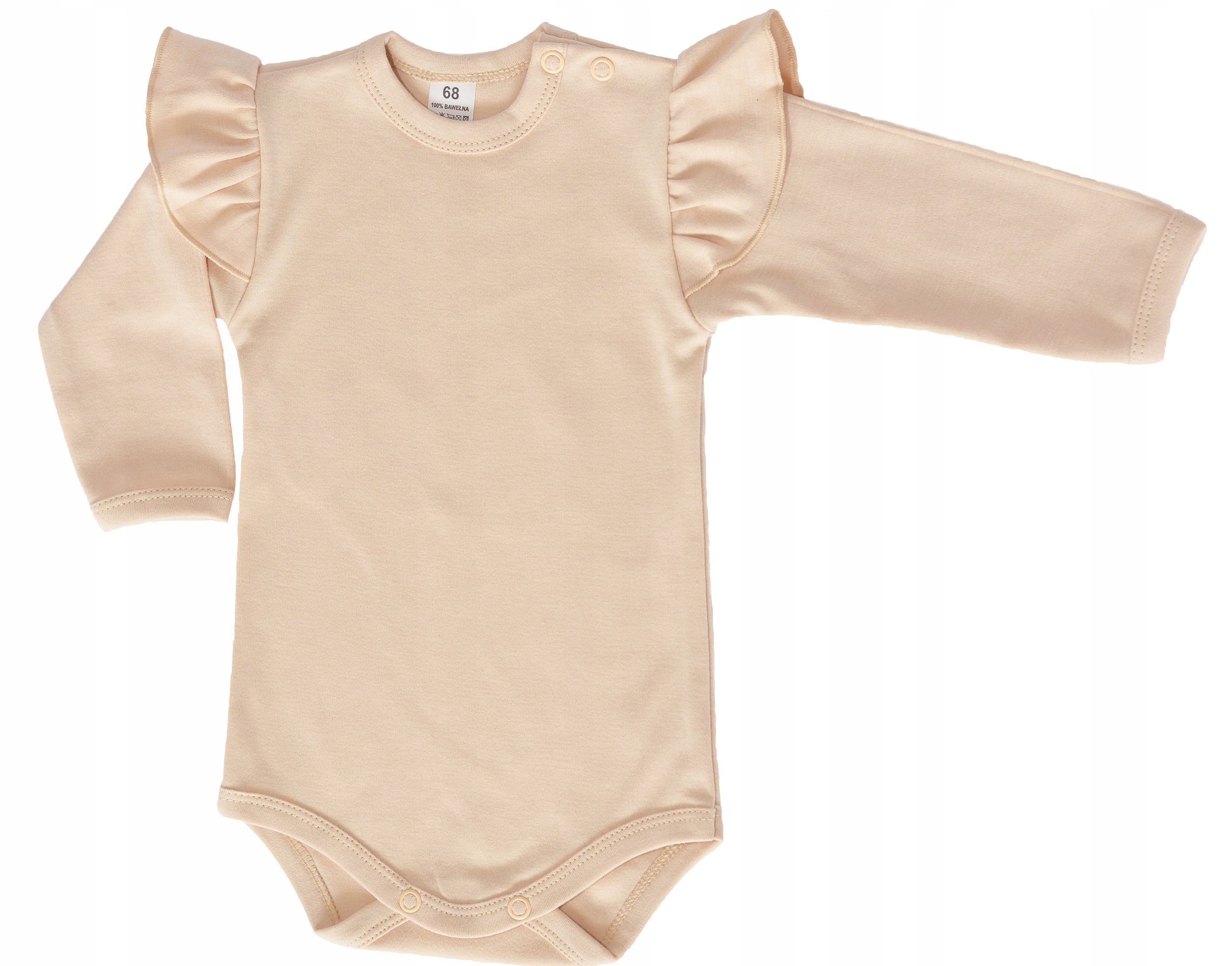 Классическое, удобное и практичное боди с длинными рукавами и рюшами на плечах, изготовлено из высококачественного хлопка, сертифицированного Oeko. Tex Standard 100 Надежный текстиль.
